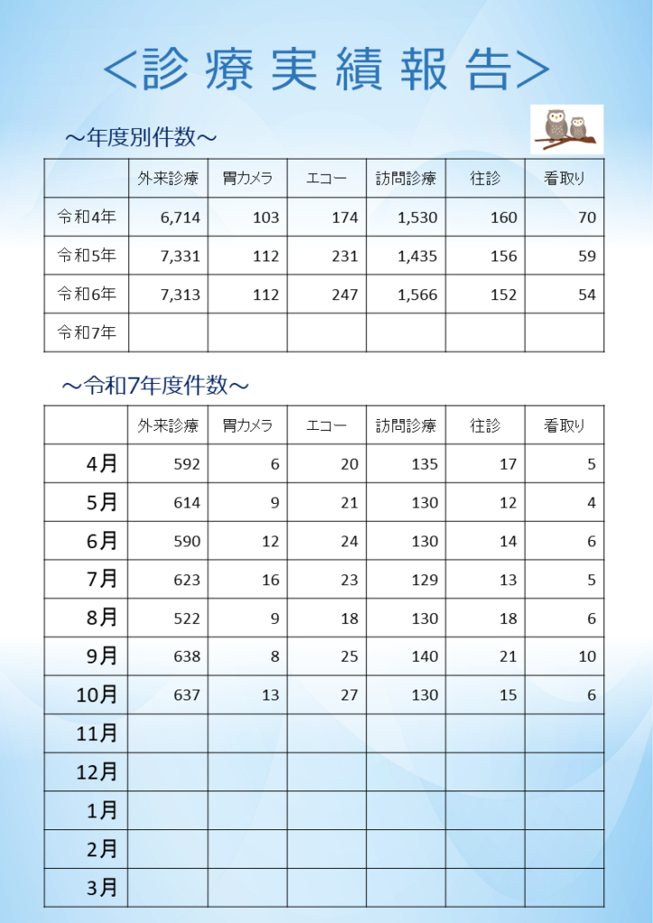 診療実績を更新いたしました。
